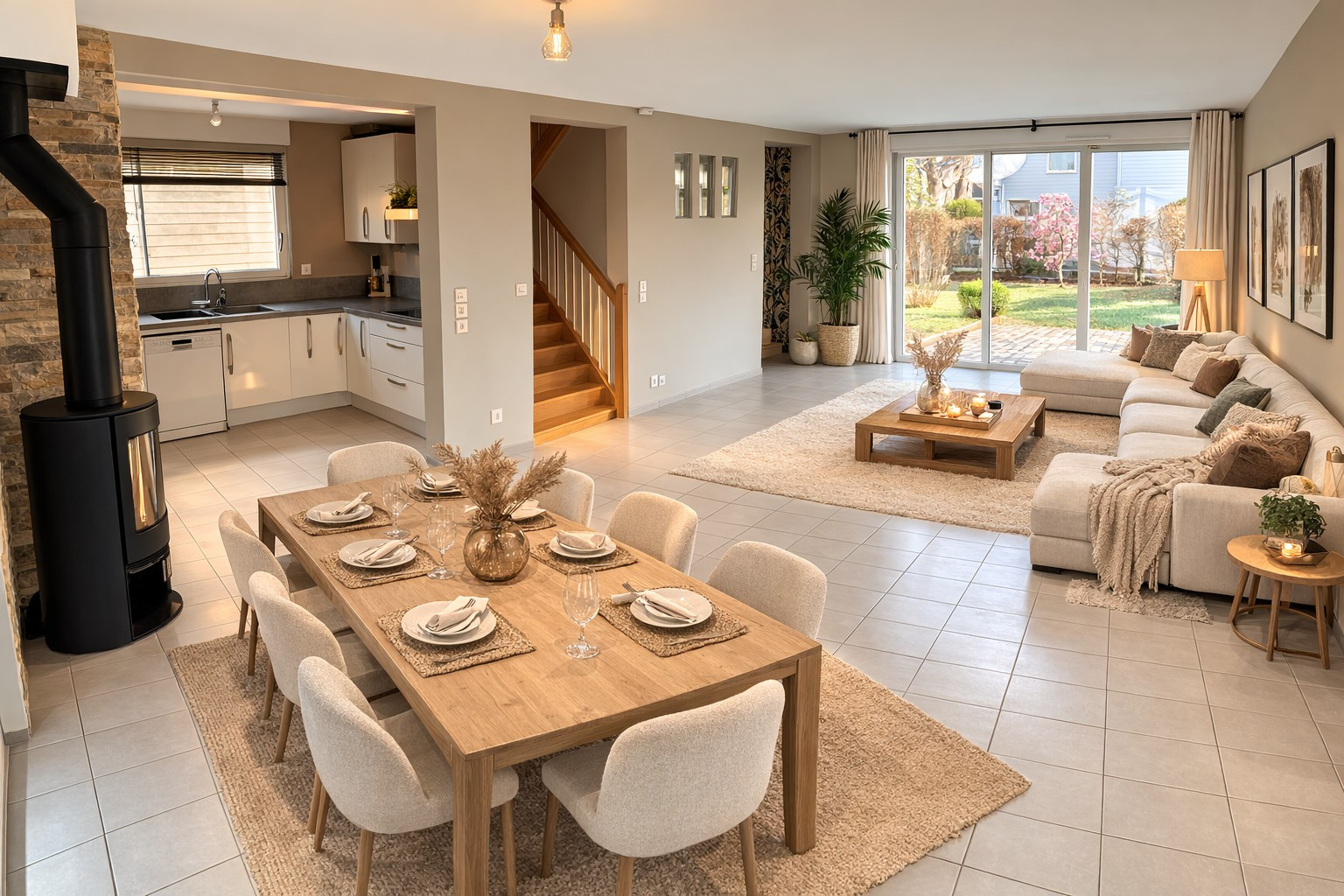 - Belle pièce de vie lumineuse avec Poêle à Bois
